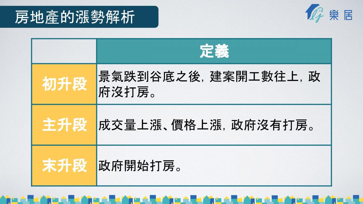 當成交量和價格都上漲到一個高點,政府就會開始修訂政策降溫,也就來到了所謂的末升段。