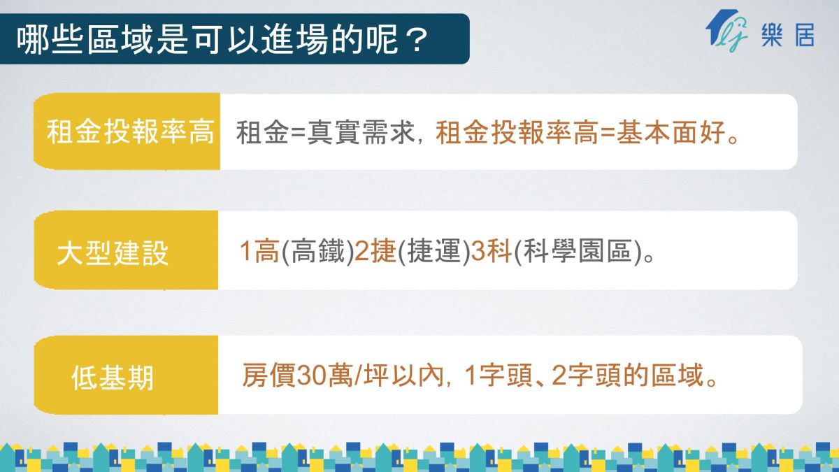 什麼是低基期,也就是低單價、低總價的區域都是可以考慮的地方。