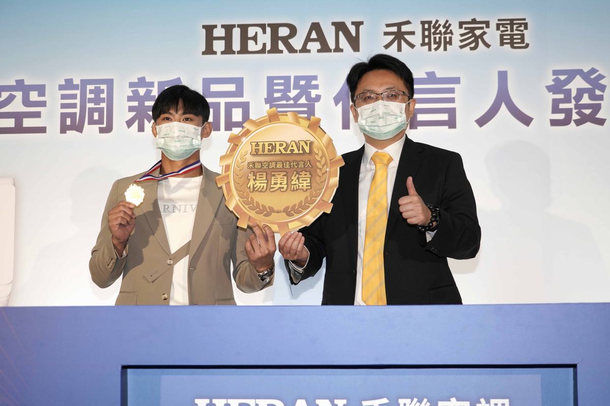 ▲禾聯家電新品暨新代言人發表會儀式(由左至右分別為代言人楊勇緯、禾聯碩股份有限公司蔡柏毅副董事長)(圖片提供/HERAN禾聯家電)
