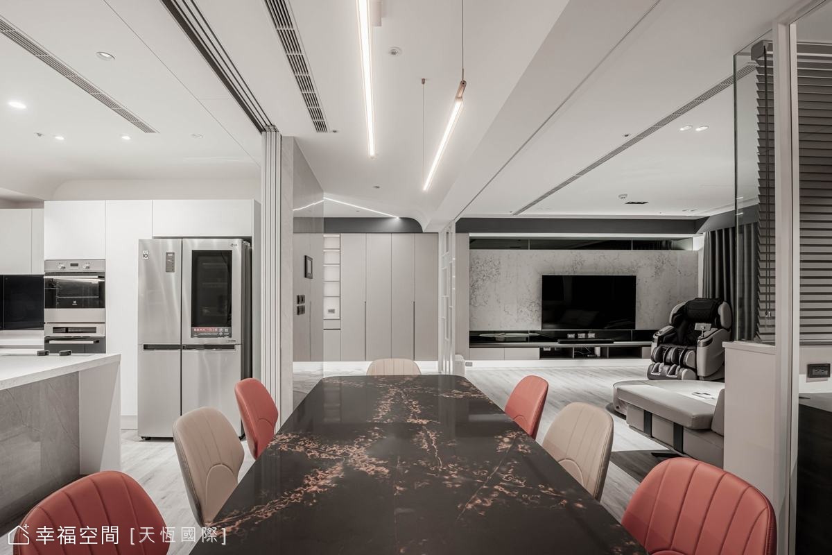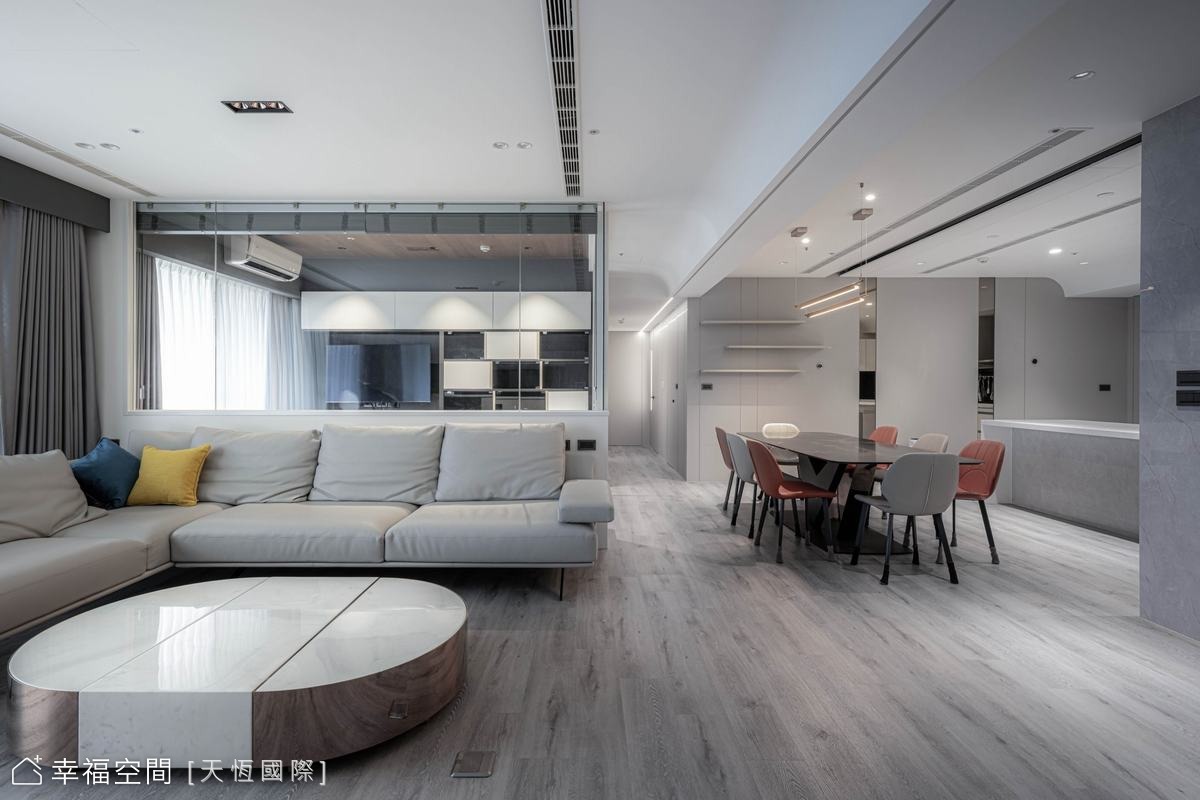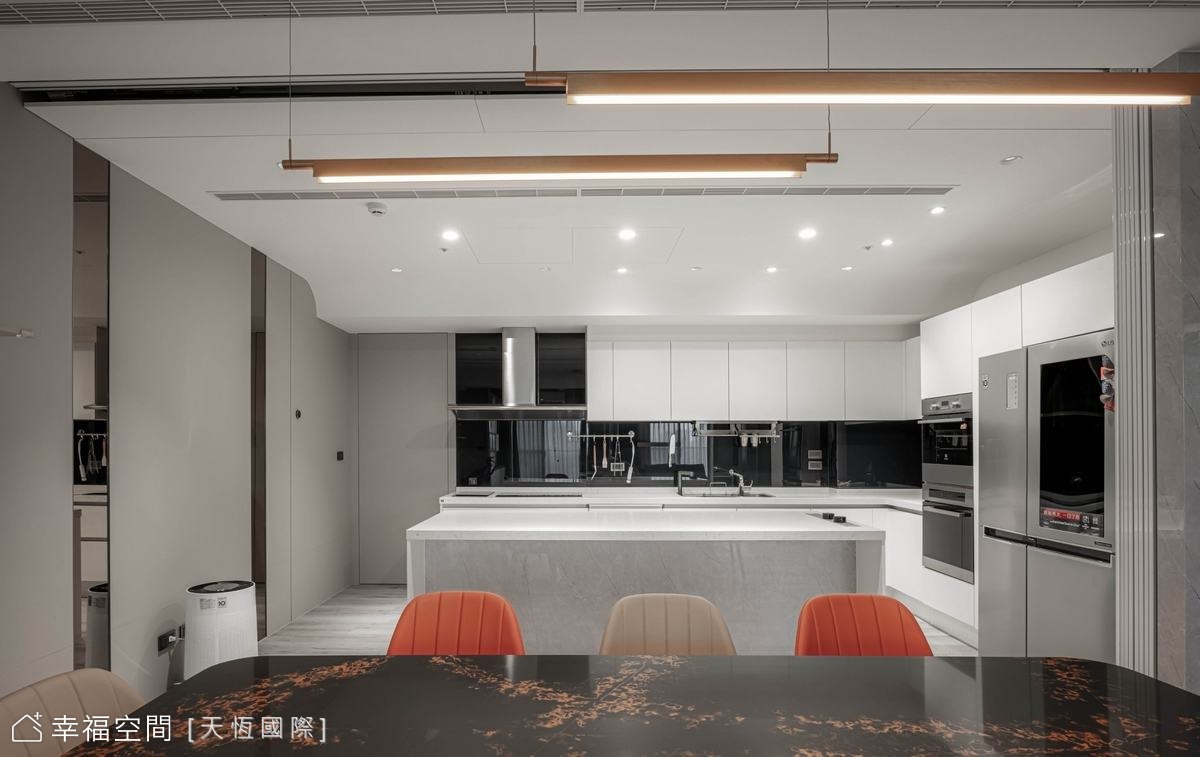 ▲ 在客廳與餐廳設計上,分別採用天恆國際的「Caesarstone愷薩金石」及「矽鋼石」作為空間主題。(圖片提供/天恆國際)