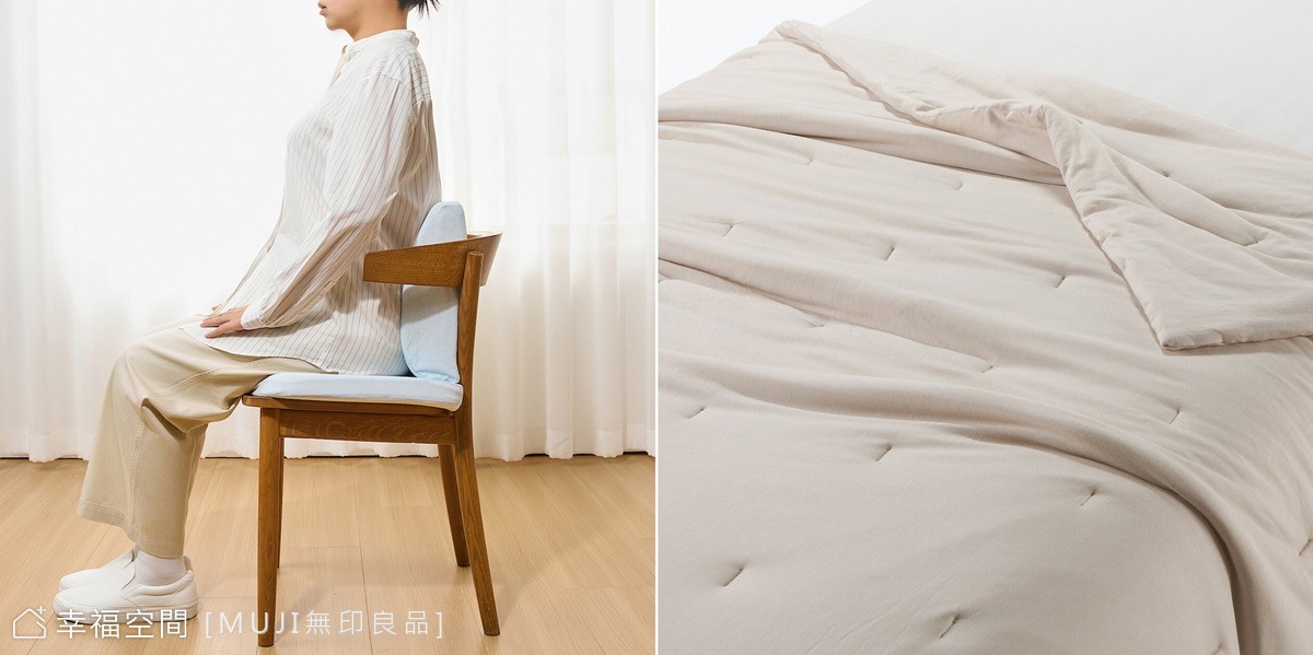 無論是辦公時專注坐姿,或居家時的輕鬆倚靠,適當的支撐都有助於身體釋放壓力。MUJI無印良品新推出的涼感多用途靠枕、涼感坐墊與涼感腰墊,不僅能靈活作為靠背、抱枕或腿枕使用,也能舒緩長時間久坐造成的緊繃感,帶來清涼舒適的使用體驗。