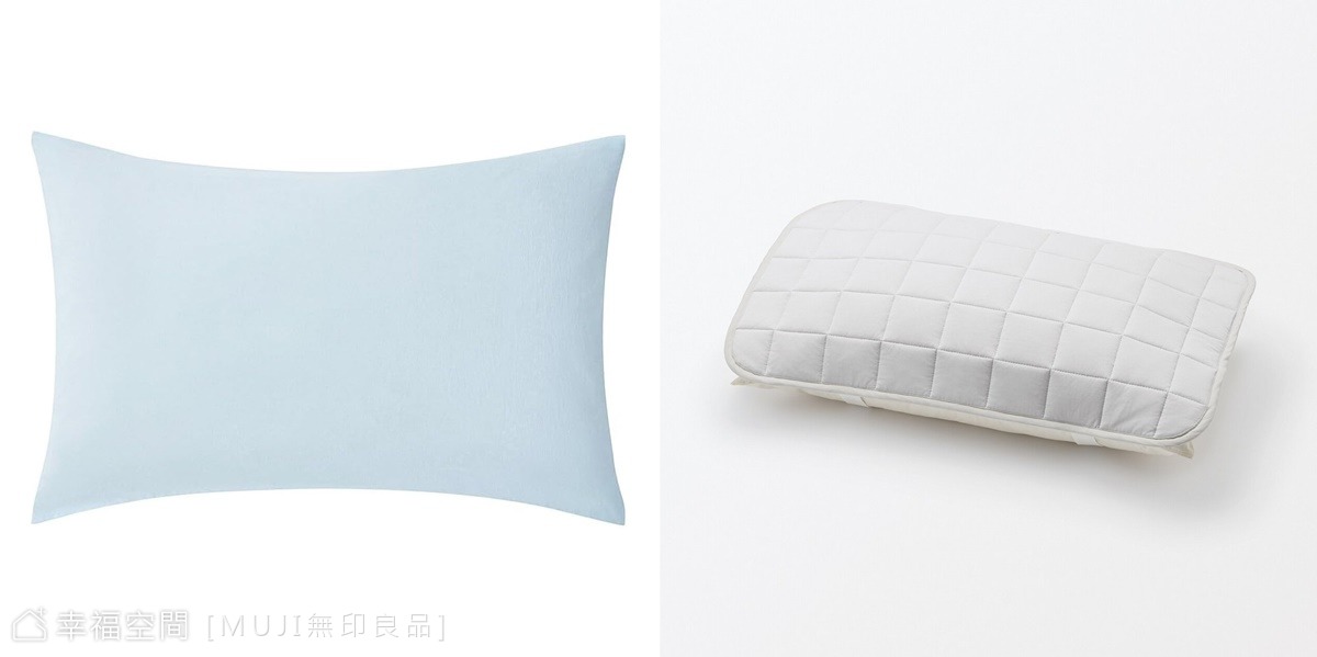 ▲(左)涼感枕套,表面採用特殊布料製成,能瞬間帶來涼感,親膚舒適且不黏膩;(右)涼感枕頭墊,由涼爽素材製成,其延展性佳,輕柔舒適。(圖片提供/MUJI無印良品)