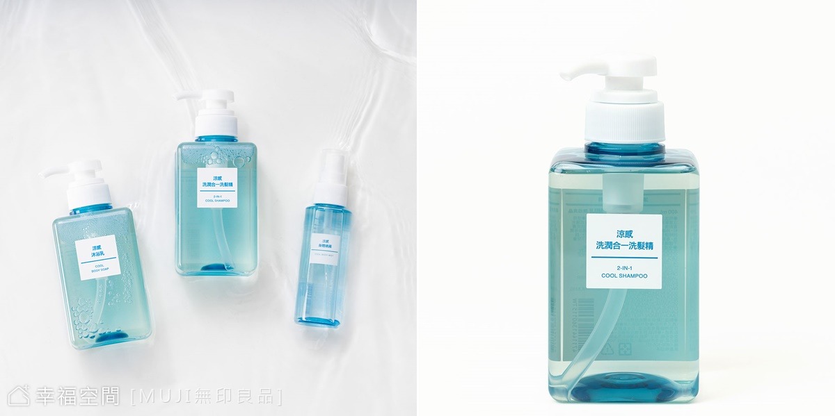 夏季沖澡也有季節限定的涼感系列,MUJI無印良品推出涼感洗沐系列,推薦含有薄荷醇與保濕成分的涼感沐浴乳與涼感洗潤合一洗髮精,在清新柑橘香氣中潔淨肌膚與頭皮,同時帶來沁涼舒適的使用感受。