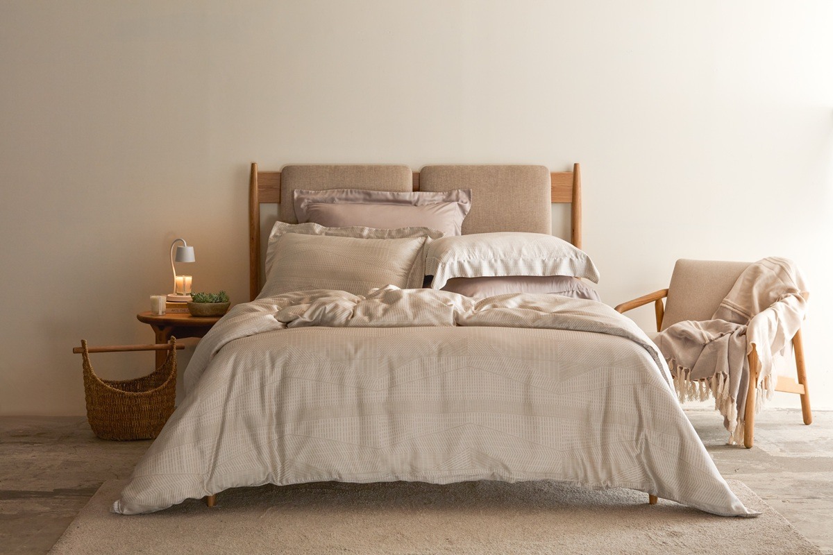 夏天晚上總會被熱醒,冷氣開了又關、棉被蓋了又踢?想提升睡眠品質,從寢具著手絕對關鍵。「艾禮思300織天絲系列-南笙」以擁有極佳的吸濕性及透氣性的100% 天絲™萊賽爾纖維製成,結合專櫃級高密度 300 織紗/ 60 支的精細紡紗編織,打造出「會呼吸的透氣面料」,相較其他面料更適合台灣潮濕悶熱的夜晚,讓你在清涼柔滑的包覆中自然入眠。「南笙」設計靈感來自南風吹拂的山嵐,以多種手繪線條及大地色系營造寧靜氛圍,不僅舒適更療癒視覺。
