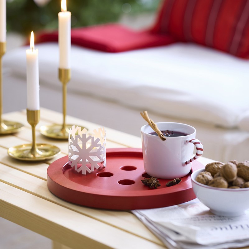 VINTERFINT托盤把「鈕扣」放大好幾倍,變成亮眼的紅色托盤,不論用來盛裝茶點還是作為擺飾,都能為空間增添趣味。小小火柴棒放大也能超有型!