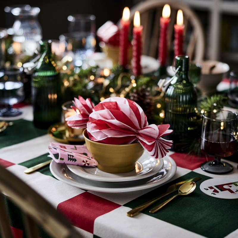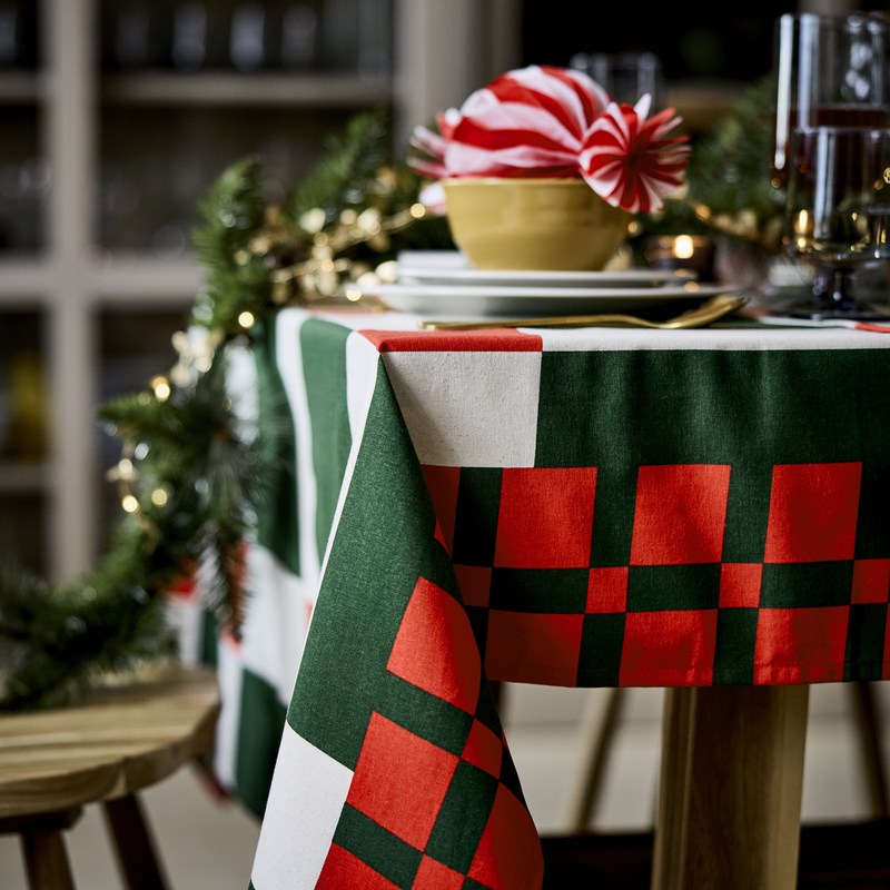 經典紅綠格紋的VINTERFINT桌巾,大小錯落排列的方格色彩活潑,一鋪上餐桌就充滿聖誕氣氛。