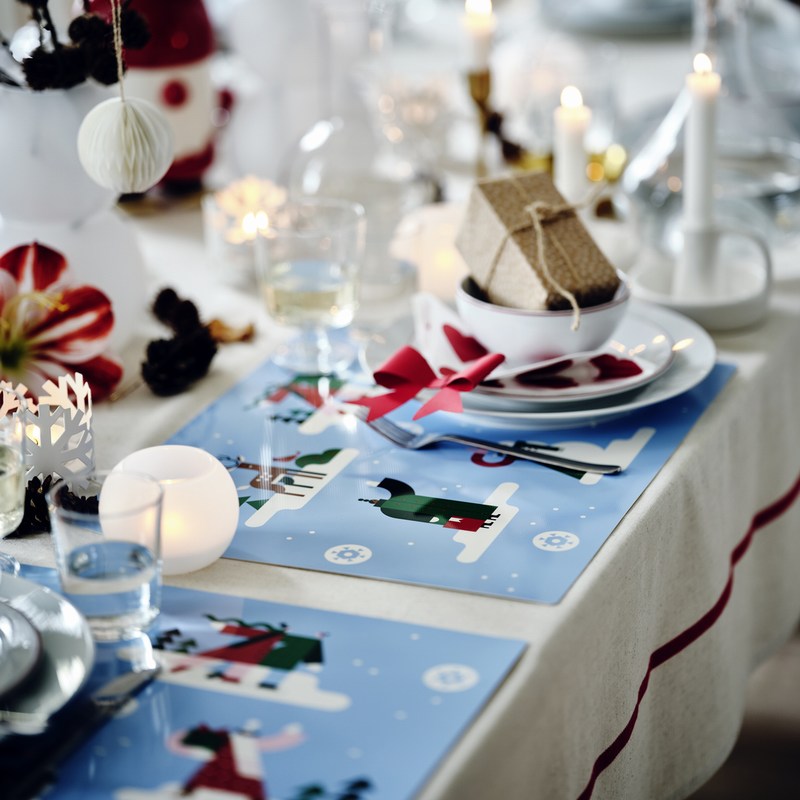 印有雪人及麋鹿圖案的VINTERFINT餐墊,為每個餐盤劃出專屬的舞台,不只整齊有序,也讓日常餐桌增添幾分溫馨趣味。