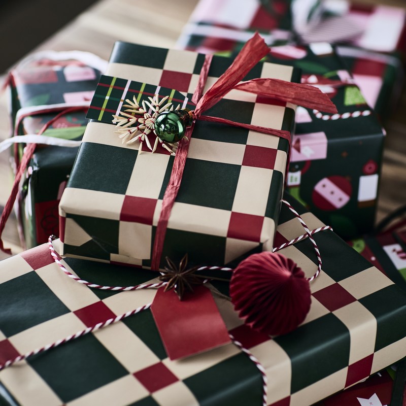 用同款格紋的VINTERFINT 禮品紙親手包裝滿滿心意。