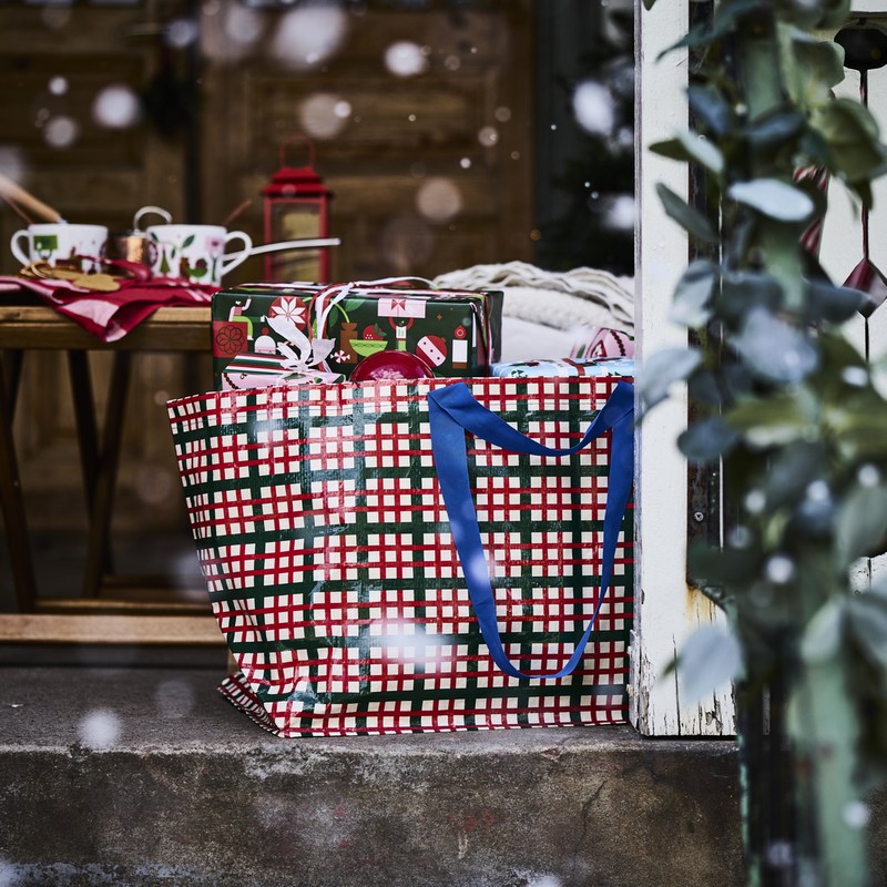 IKEA經典的藍色購物袋也推出聖誕限定款---VINTERFINT環保購物袋,換上紅綠格紋的聖誕新裝,大容量又充滿節慶氣息,走到哪裡都是目光焦點!
