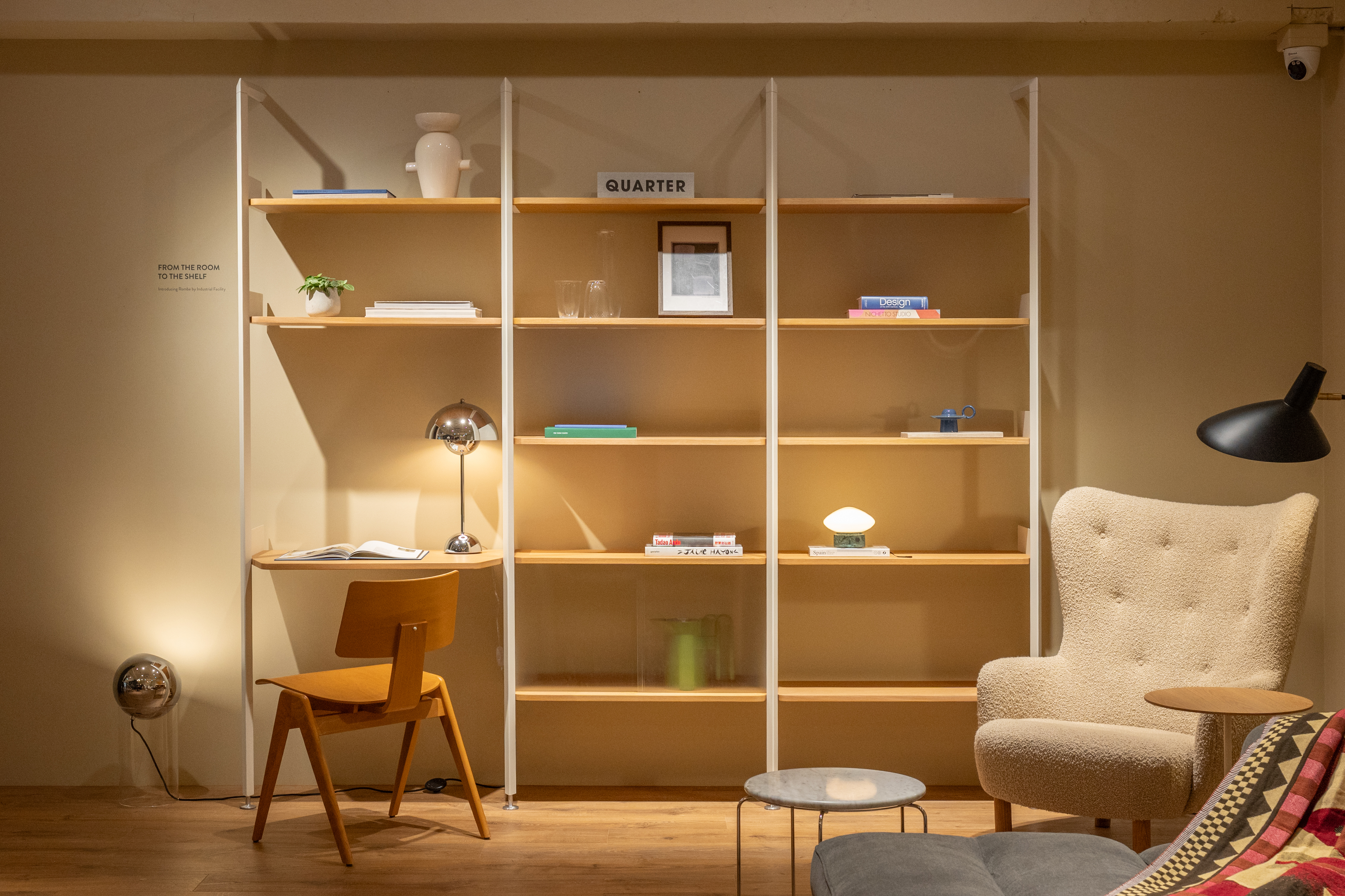 此空間以「閱讀即生活的編目方式」為靈感,將設計書刊、器物收納於層架之中,呈現彷彿策展工作室般的景象。全新 Rombe 模組書架也於此首度亮相,Rombe 的結構、比例與模組性讓它不只是書架,而是一種「編輯生活的方式」,也象徵 &Tradition 持續探索當代居家型態的企圖心:家不只是放置物件的地方,而是一個能反映個人秩序、興趣與日常節奏的生活系統。