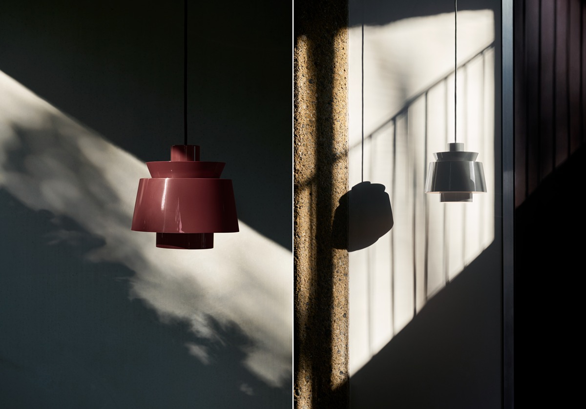 由丹麥建築師 Jørn Utzon 設計的 Utzon 吊燈,誕生於 1947 年,以層疊幾何構成的燈罩結構,展現其標誌性的建築語彙,亦被視為其日後大型建築創作的重要起點 。本季推出勃根地紅、炭灰與杏褐三款新色,在經典造型之上延伸更細膩的色彩層次。燈罩由多個金屬結構組合而成,透過精準的構造設計,使光線得以柔和且有層次地向外擴散,展現光影與材質之間的動態關係 。